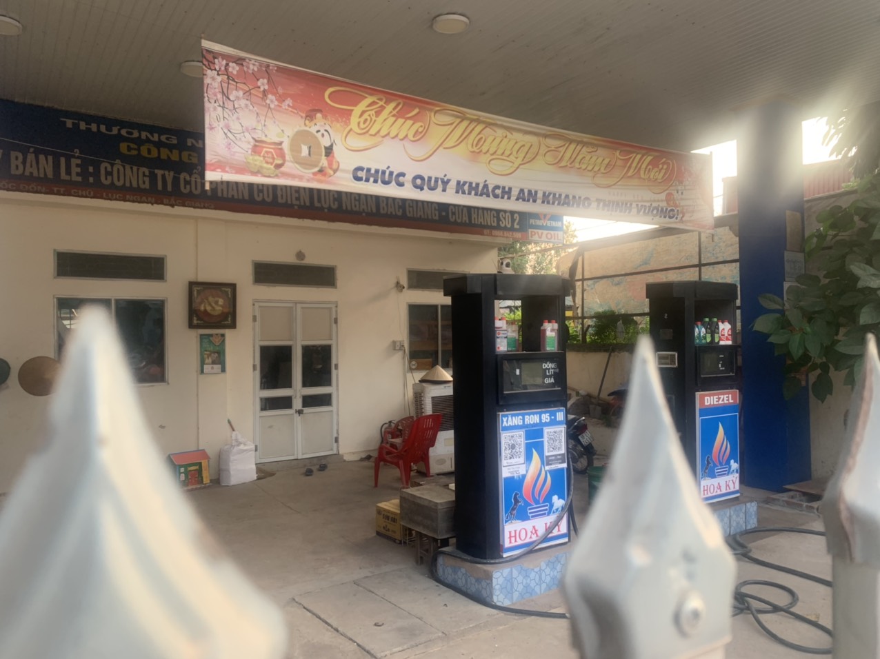 - Vào hồi 16h50, làm việc tại Cửa hàng xăng dầu số 2 thuộc Công ty cổ phần Cơ điện Lục Ngạn - Bắc Giang, thị trấn Chũ; thương nhân phân phối là Công ty TNHH MTV Hoa Kỳ. Tại thời điểm làm việc, Cửa hàng xăng dầu số 2 không bán hàng do không còn xăng dầu để bán. Tiến hành đo bể xăng 10 m3 còn 05 cm, tương đương còn 72 lít xăng và đo bể dầu 10 m3 còn 10 cm, tương đương còn 201 lít dầu.