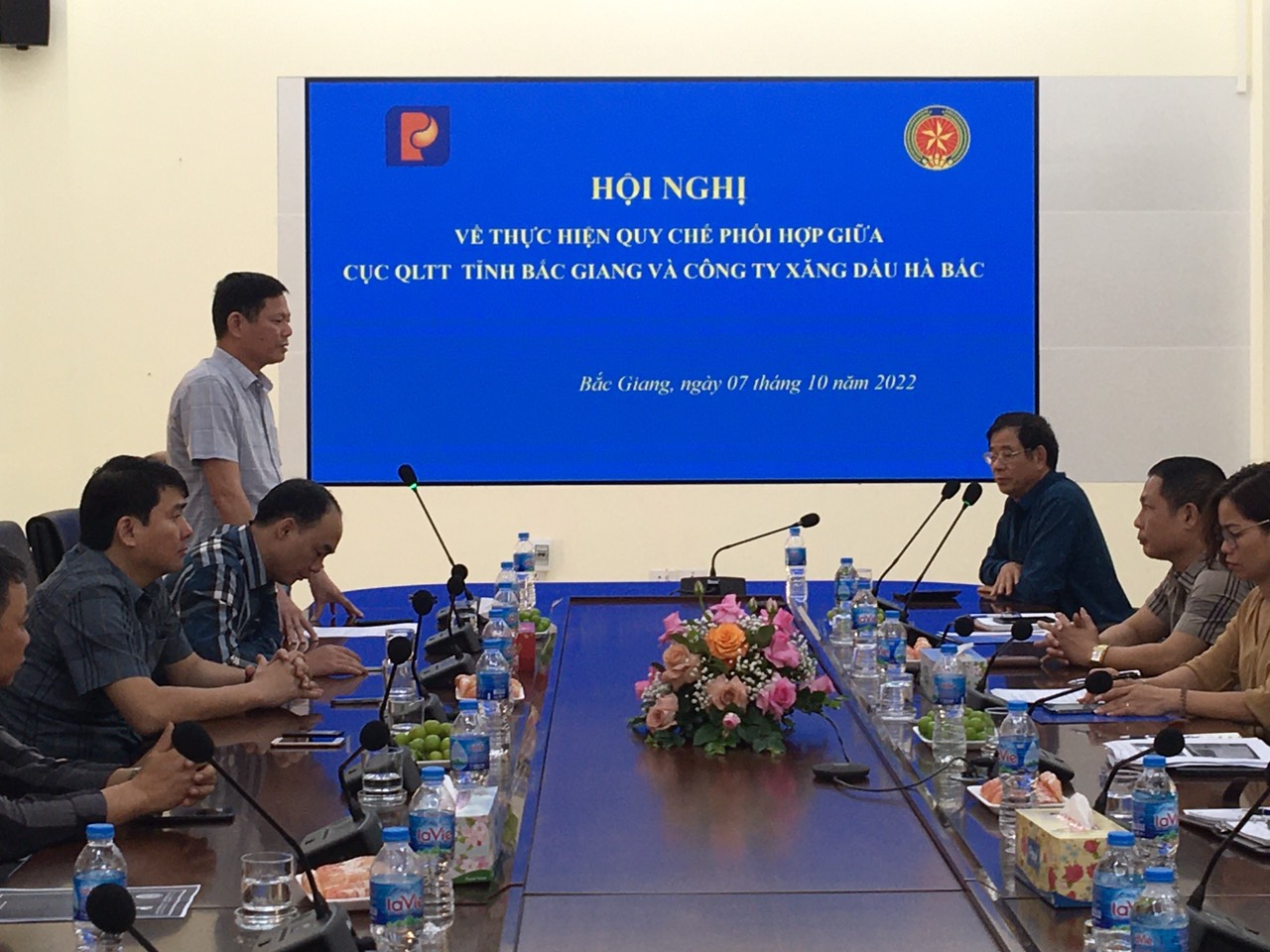 Dự Hội nghị, về phía Cục QLTT tỉnh Bắc Giang có đồng chí Chu Thanh Hiến - Phó Bí thư Đảng ủy, Phó Cục trưởng cùng các đồng chí Lãnh đạo Cục, Trưởng phòng chuyên môn, nghiệp vụ, Đội trưởng các Đội QLTT; về phía Công ty Xăng dầu Hà Bắc có ông Phan Bá Tài - Bí thư Đảng ủy, Chủ tịch HĐQT kiêm Giám đốc Công ty cùng các đồng chí trong Ban Giám đốc, Lãnh đạo các Phòng nghiệp vụ của Công ty.