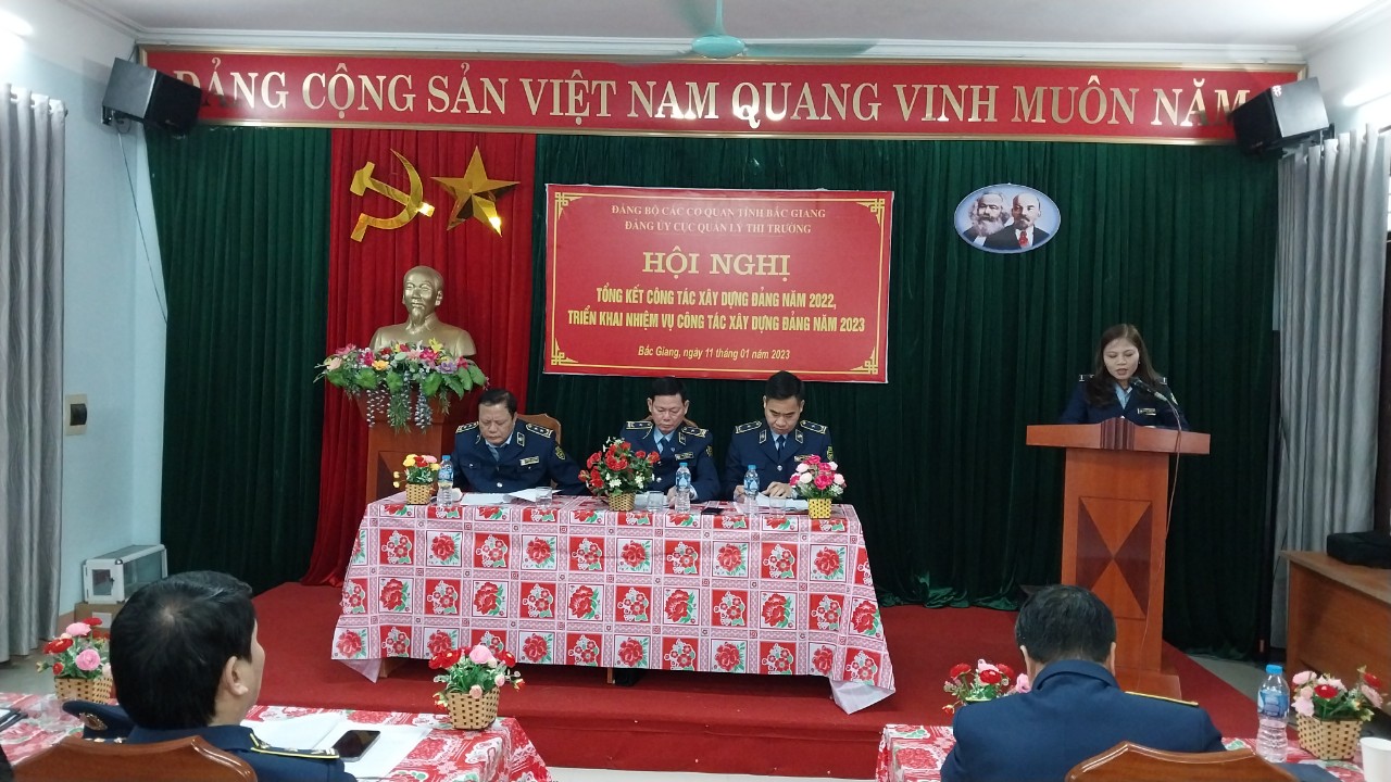 Nhiệm vụ trọng tâm năm 2023, Đảng ủy Cục QLTT tỉnh Bắc Giang tiếp tục lãnh đạo, chỉ đạo tổ chức thực hiện tốt Nghị quyết Đại hội Đảng bộ Cục lần thứ I, Nghị quyết Đại hội Đảng bộ Các cơ quan tỉnh lần thứ XVIII, Nghị quyết Đại hội Đảng bộ tỉnh lần thứ XIX và Nghị quyết Đại hội lần thứ XIII của Đảng; đổi mới mạnh mẽ công tác giáo dục chính trị, tư tưởng, đạo đức, lối sống cho đảng viên, công chức và người lao động trong Đảng bộ; thường xuyên quan tâm xây dựng Đảng bộ trong sạch vững mạnh, nâng cao năng lực lãnh đạo và sức chiến đấu của các tổ chức cơ sở đảng; tăng cường và nâng cao chất lượng công tác kiểm tra, giám sát giữ gìn kỷ luật Đảng, sự lãnh đạo của Đảng đối với các đoàn thể; tập trung lãnh đạo, chỉ đạo thực hiện và hoàn thành nhiệm vụ chính trị của lực lượng QLTT trong năm 2023. Phấn đấu cuối năm, 100% đảng viên trong Đảng bộ được đánh giá, xếp loại hoàn thành tốt nhiệm vụ, trong đó 20% đảng viên hoàn thành xuất sắc nhiệm vụ; trên 20% Chi bộ trực thuộc hoàn thành xuất sắc nhiệm vụ; Đảng bộ quyết tâm giữ vững danh hiệu hoàn thành xuất sắc nhiệm vụ; đồng thời, bồi dưỡng kết nạp ít nhất 01 - 02 quần chúng ưu tú vào Đảng.